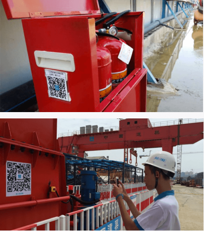 对施工现场大型机械设备进行二维码管理,内容主要包括设备名称、编号、所属区域、安装位置、规格型号、出厂日期、备案有效期、设备日常维护记录、设备操作员、专项方案、备案资料、应急方案、起升高度、幅度、起重力矩等内容。确保做到所有设备有专人负责和统一管理,每台设备定人定机定责,绝不允许无证上岗或是不相关人员到操作平台进行机械操作。